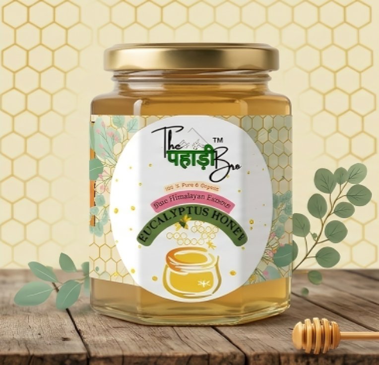Eucalyptus honey is a dark, aromatic honey sourced from eucalyptus blossoms in the Himalayan foothills. Rich in antioxidants and natural antibacterial properties, it is traditionally valued for supporting respiratory health, soothing coughs, strengthening immunity, and promoting overall wellness.